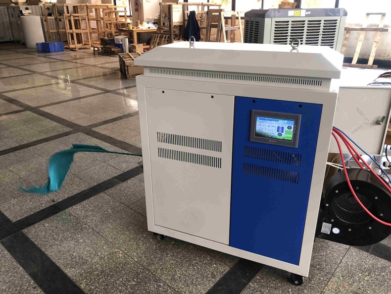 電磁熱風(fēng)爐,為本公司2021年極力推出的高能效變頻電磁感應(yīng)熱風(fēng)爐,功率有8KW~60kW系列化,有低溫和高溫系列,低溫系(一般為100℃以內(nèi))出風(fēng)口和出風(fēng)量都比較大,可直接為工廠、大棚供暖,食品、藥材等場合烘干;高溫系(一般為100℃以上,利用循環(huán)風(fēng)的方法,可達300℃以上),具有出風(fēng)口較小,出風(fēng)量相對小,但風(fēng)壓較大的特點。經(jīng)測試和普通電熱式熱風(fēng)爐對比,可節(jié)約20-35%能源。配有大屏幕7.0英寸觸摸屏,方便操控,還可配有遠程監(jiān)控,包括電腦遠程和手機遠程,全部工作過程無需人看管。適用于化工制藥、食品飼料、金屬噴涂、農(nóng)牧養(yǎng)殖、木材皮革、工礦采暖、通用機械設(shè)備、自動化設(shè)備等場合。